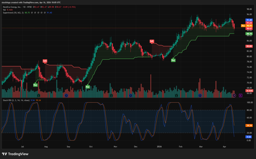 빅테크 기업들이 AI 모델을 설계할 때, 넥스트에라 에너지는 그 AI 모델을 가동할 거대한 물리적 인프라에 필수적인 ‘청정에너지’를 공급합니다. 오늘 우리는 이 영리한 전력 판매자의 압도적인 펀더멘탈 해자(Moat)를 파악하고, 최신 시스템 차트를 통해 가장 안전하고 확실한 넥스트에라 에너지 매수 타점을 정밀 타격해 보겠습니다.